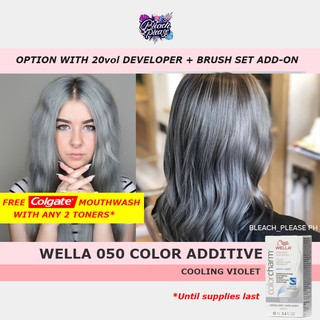 Wella 050 cooling violet used as a; I bleached my hair then directly threw that and developer on after. Wella color charm cooling violet color charm liquid permanent hair color additive. I mixed this with a 050 wella additive. This is an inexpensive and easy way to remove any orange and yellow hair tones to get that beautiful ashy blonde hair.